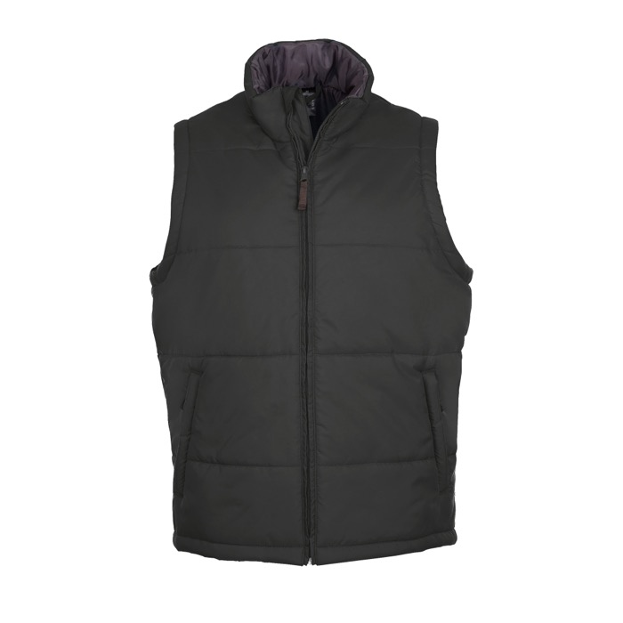 SOL'S WARM SENHOR, Bodywarmer 210g/m², Colete básico de ótima qualidade e competitivo, área de superfície muito grande para personalização nas costas, exterior de nylon 100% 210T, repelente de água e à prova de vento, revestimento AC, forro de poliéster 100% 190T, pescoço e corpo revestidos com nylon 190T cinza escuro Acolchoado com enchimento de poliéster 220 g / m², abertura com fecho de correr, 2 bolsos.
