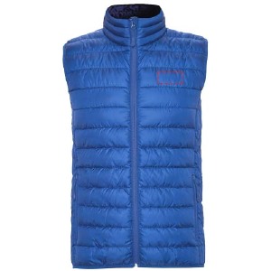 Colete com enchimento de toque tipo pena. Fechos de correr invertidos com protetor de queixo e puxador a condizer. Dois bolsos laterais com fecho de correr. Rebite elástico na bainha e nas cavas. Com forro interior a contrastar, é uma peça leve e dobrável, resistente à água e antivento.