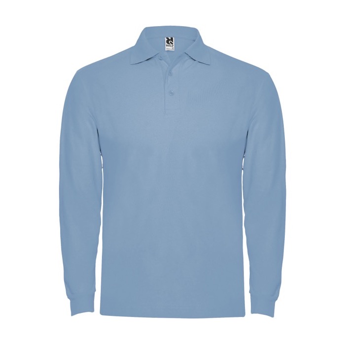 Polo de manga comprida com gola e punhos canelados, carcela de três botões e punhos canelados em elastano 1x1. Tapa costuras reforçada na gola. Bolso opcional. Etiqueta amovível. O modelo tem 190 cm e está a usar o tamanho L.