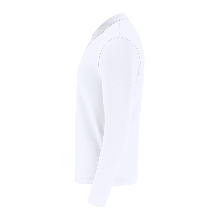 Polo unissexo de manga comprida feito de tecido piqué. Gola e punhos de ponto 1 x 1 com elastano para melhor ajuste e conforto. Carcela de três botões a condizer e tapa-costuras reforçado na gola.