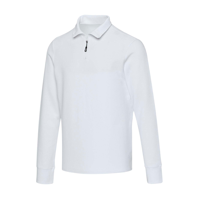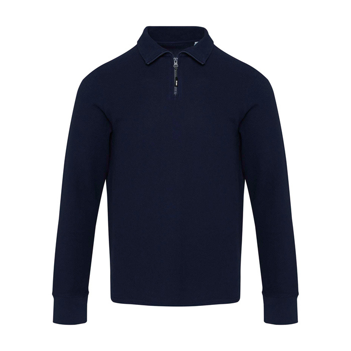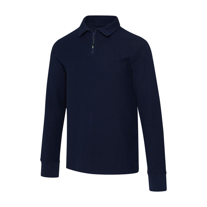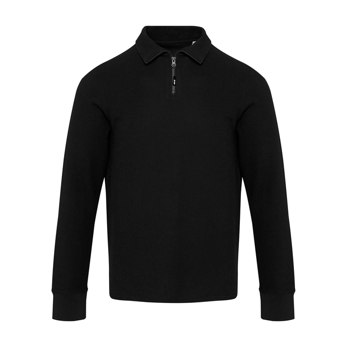 Polo de algodão unissexo manga comprida, zíper médio 245 g/m2 Elevate