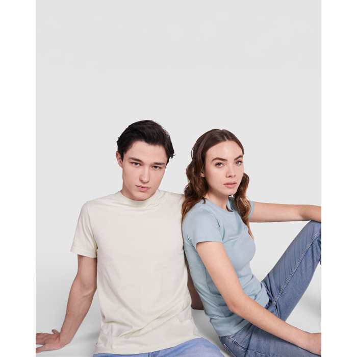 T-shirt tubular de manga curta e gola redonda. Disponível também para crianças, adapta-se a ações promocionais para qualquer tipo de público.
