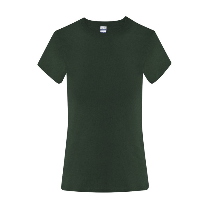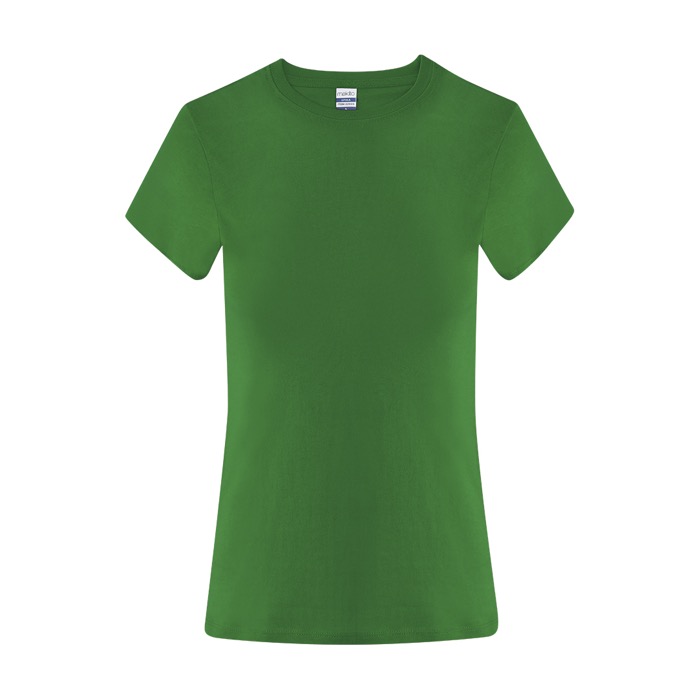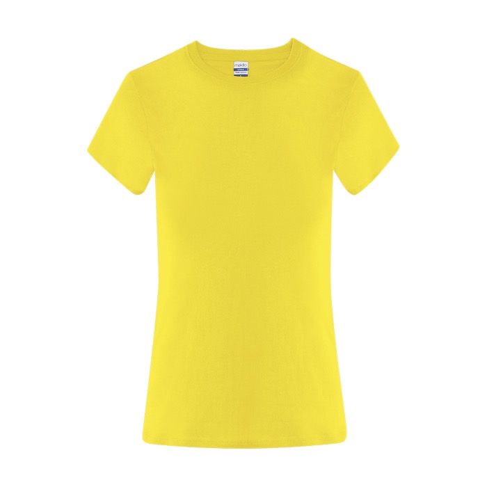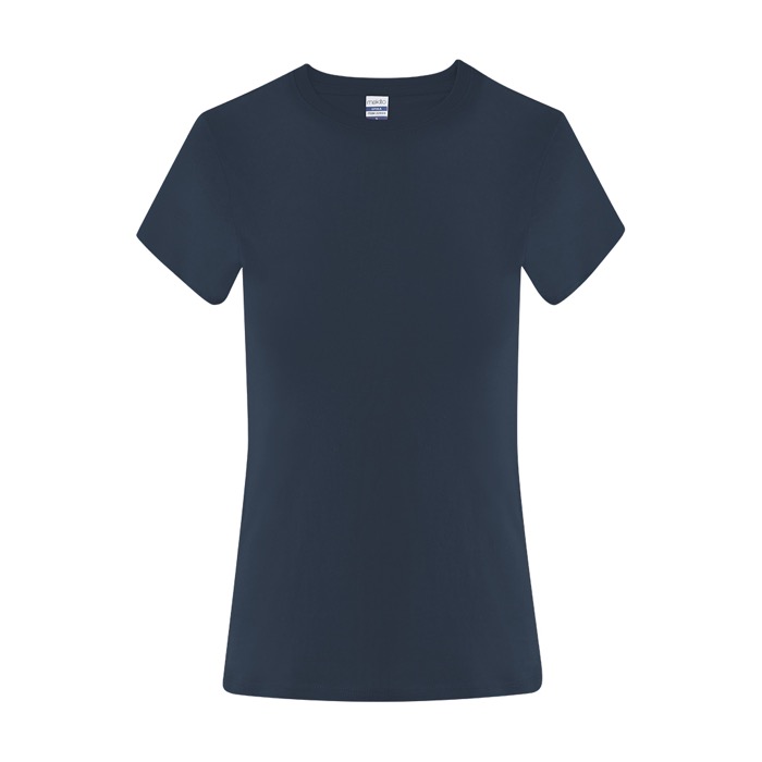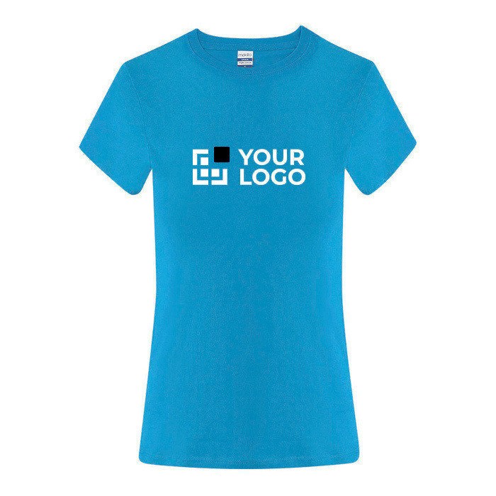 T-shirt de manga curta para mulher, feita de algodão macio de malha lisa de 150 g/m². Inclui costuras laterais para manter a forma e um ajuste feminino pensado para uso diário. A gola redonda canelada 1 x 1 dá-lhe resistência face ao uso contínuo, enquanto o tapa-costuras a condizer melhora o acabamento interior. Peça versátil para dotação de equipas, ações de merchandising ou vestuário de pessoal em feiras e eventos com o seu logo.