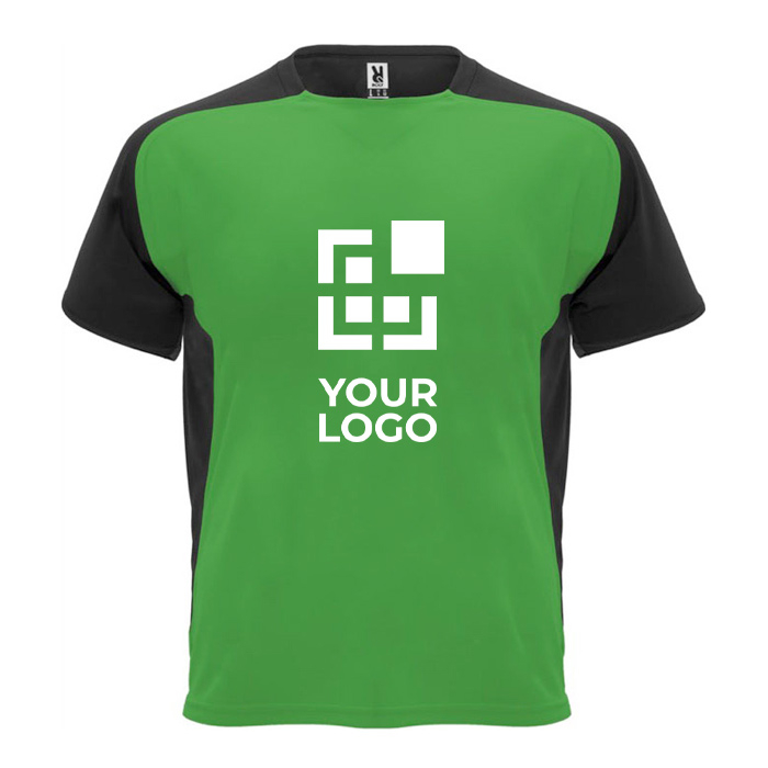 Destaque-se com estas t-shirts técnicas. Design com painéis laterais contrastantes oferece um toque dinâmico. Para equipas desportivas ou eventos corporativos.