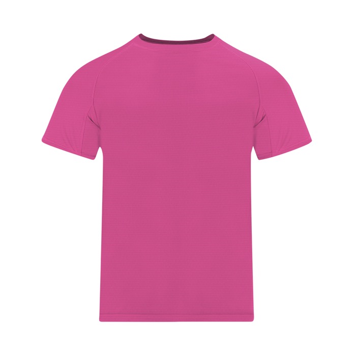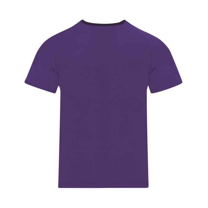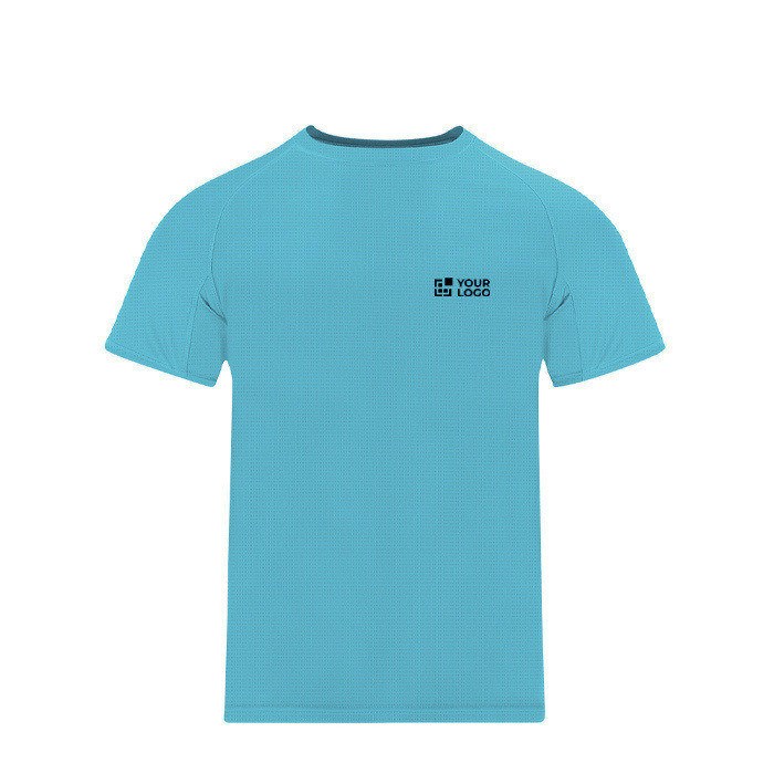 T-shirt técnica de manga curta raglan para criança, feita 100% de poliéster com tecido waffle interlock, desenhada para acompanhar a atividade diária. Inclui tecnologia Cool Dry, a qual melhora a transpiração e acelera a secagem após a utilização. As mangas raglan facilitam a mobilidade, enquanto as costuras overlock na cava e mangas conferem um acabamento resistente. Gola e tapa-costuras a combinar para um aspecto uniforme. Opção prática para dotações escolares, campos de atividades desportivas e ações de marca em eventos.