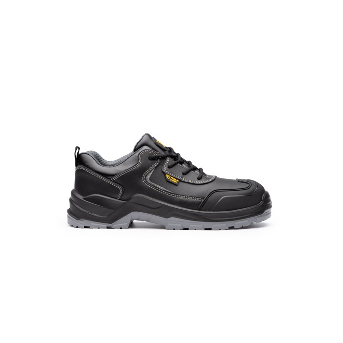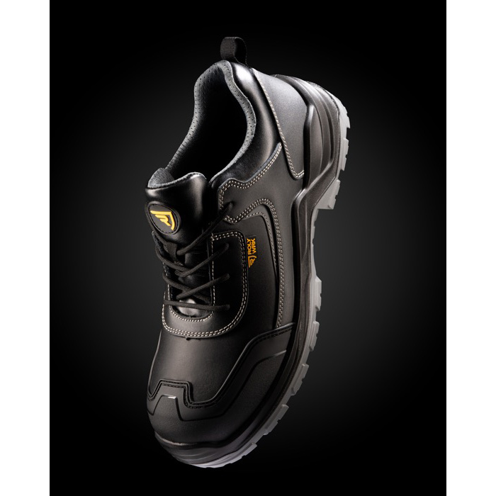 Calçado de trabalho unissexo com revestimento em pele e tecido mesh, concebido para uso intensivo em ambientes profissionais. Inclui biqueira em fibra de vidro com resistência de 200 joules e palmilha anti-perfuração em têxtil de fibras de plástico entrelaçadas, com espessura de 3mm. A sola de poliuretano de dupla densidade melhora a estabilidade e a aderência em dias longos. Fecho com atacadores e reforços na biqueira e no calcanhar para maior resistência. Adequado para uniformização em armazém, logística ou manutenção.