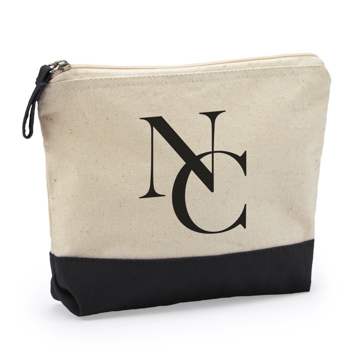 Nécessaire multiusos feito de algodão de 280 g/m², com acabamento bicolor e fecho de correr com puxador de algodão condizer.