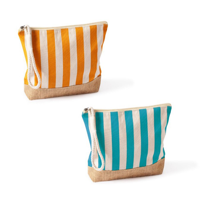 - Necessaire em algodão e juta com fecho cómodo e rápido