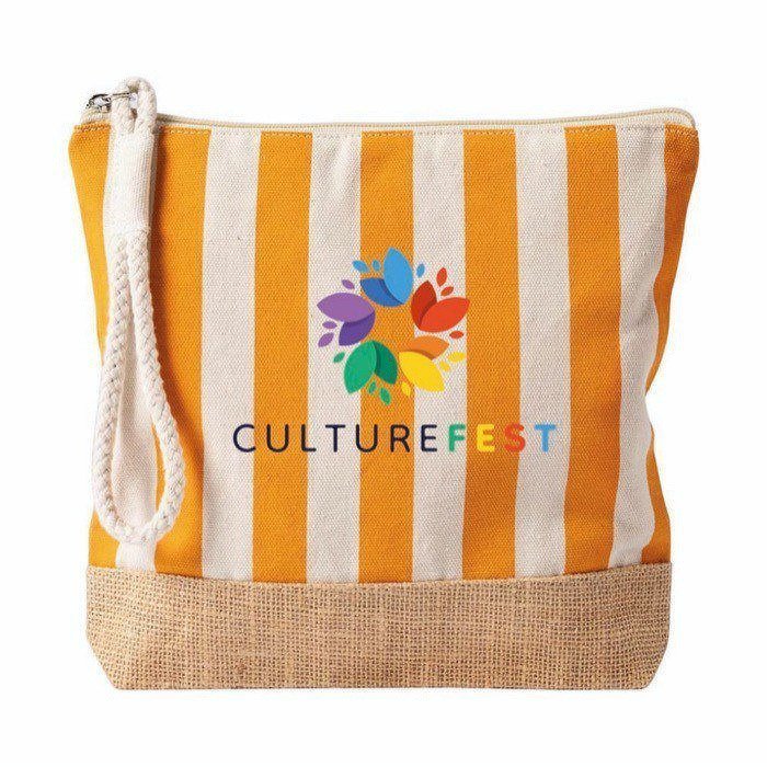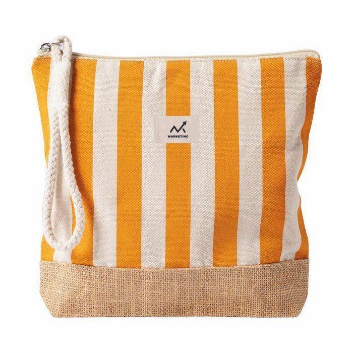 Necessaire em algodão e juta de 220 g/m², pensado para o uso diário na empresa e em deslocações. O tecido combina um acabamento natural com boa resistência ao atrito, ajudando a manter o conteúdo protegido e organizado. Inclui cordão no puxador para abrir e fechar mais rapidamente, mesmo com uma só mão. O seu formato é prático para guardar pequenos acessórios, material de trabalho ou artigos de higiene. Uma opção útil para ações de boas-vindas, eventos ou merchandising com o seu logótipo.