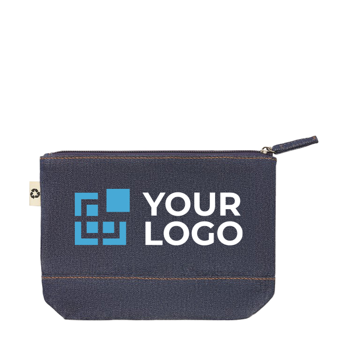 Nécessaire denim 50% algodão reciclado e 50% algodão, com fecho. 250 gr/m2.