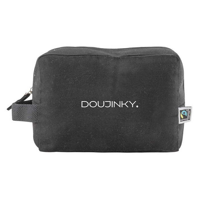 Nécessaire fabricado em algodão fairtrade preto. com selo e garantia fairtrade.