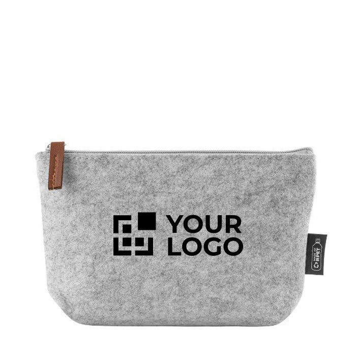 Junte-se à tendência amiga do ambiente com o nosso nécessaire de feltro poliéster reciclado. Zíper a condizer para empresas que praticam green marketing.