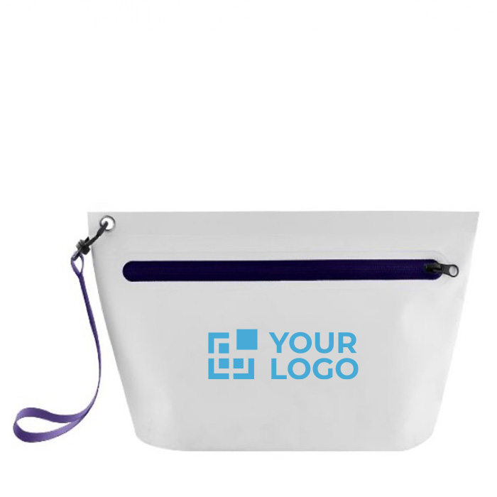Proteja os seus pertences com o nosso nécessaire estanque de poliéster 500D resistente, equipado com fecho e fita colorida para um toque de moda adicional.