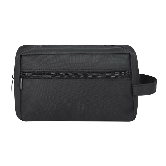 Nécessaire multiusos de pele sintética de toque macio, pensado para organizar artigos de empresa, viagem ou ginásio. Inclui compartimento principal e bolso frontal para separar acessórios e tê-los à mão. Os fechos de correr proporcionam uso prático e os puxadores metálicos facilitam a abertura mesmo com pressa. A pega ajuda a transportá-lo entre reuniões ou deslocações sem ocupar espaço. Opção prática para ações de boas-vindas, eventos corporativos ou material de apoio no escritório.