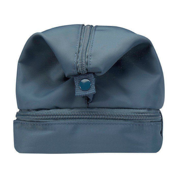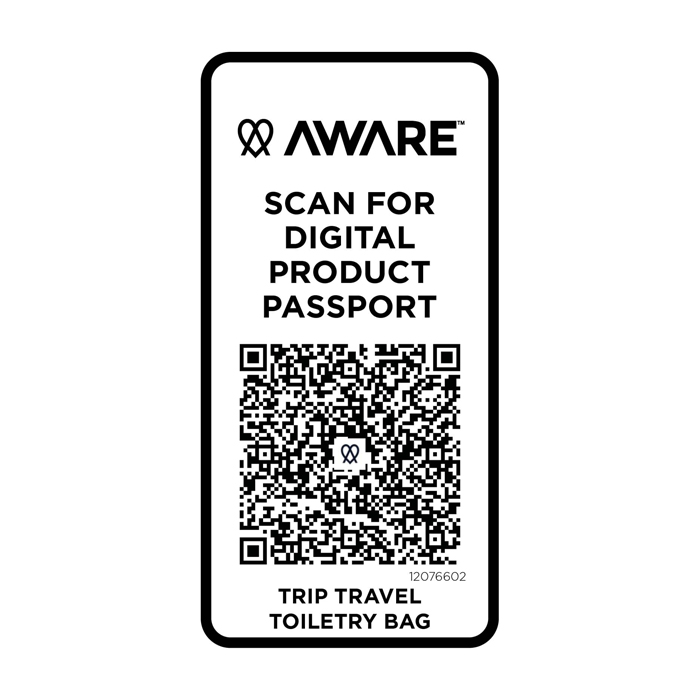 Nécessaire de viagem compacto e estruturado, ideal para manter os artigos pessoais organizados durante as deslocações. Feito de poliéster de sarja 290D, com forro de malha e rPET 210D/poliuretano, combina resistência e uma aparência cuidada. O compartimento principal inclui bolso interior com fecho de correr para artigos pequenos, enquanto o compartimento inferior tipo amêijoa permite separar o essencial para acesso rápido e melhor organização. Todas as bolsas contam com rastreador AWARE™ que, mediante código QR, permite verificar a origem e percurso do produto, assegurando transparência na cadeia de fornecimento. Capacidade: 6 litros.