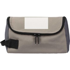 Necessaire de poliéster (600D) com forro de PU (210D). Grande compartimento com fecho na parte superior. Alça de transporte curta.