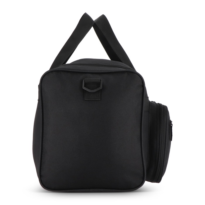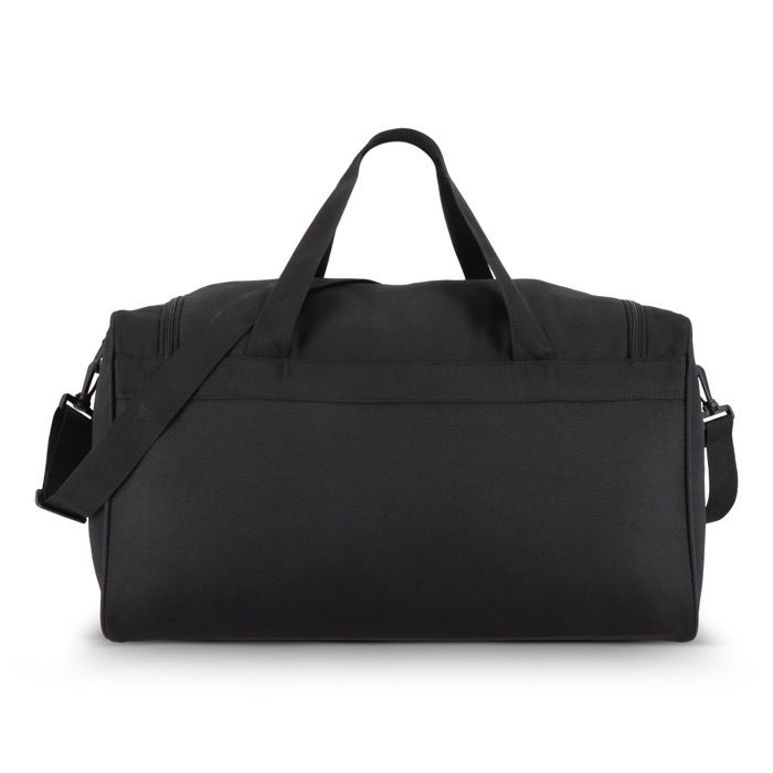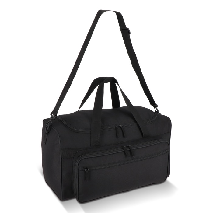 Saco desportivo ou de viagem feito de plástico reciclado 600D, desenhado para deslocações de trabalho, ginásio ou escapadelas. Dispõe de asas curtas e alça de ombro ajustável e amovível para o transportar como lhe for mais conveniente em cada trajeto. Na frente inclui compartimentos com fecho de correr, um grande e outro pequeno, para separar documentação, acessórios ou artigos de uso rápido. A capacidade de 37 L ajuda a organizar o conteúdo sem problemas. Opção prática para ações de marca em eventos ou dotação interna.