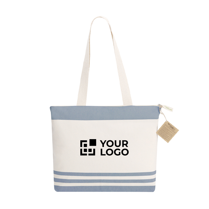 - Saco de algodão reciclado com design de listras horizontais
