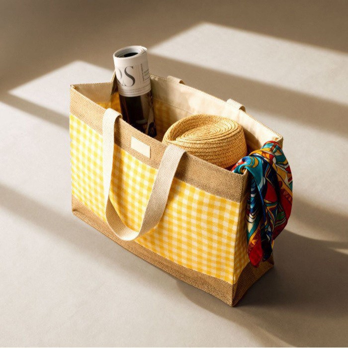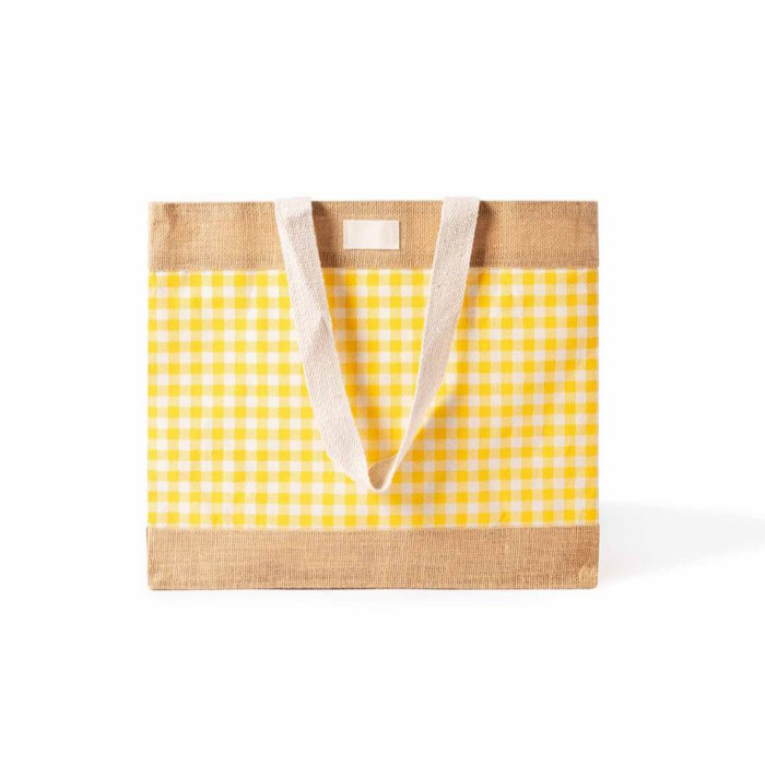 Saco em algodão reciclado e juta com design aos quadrados 220 g/m²