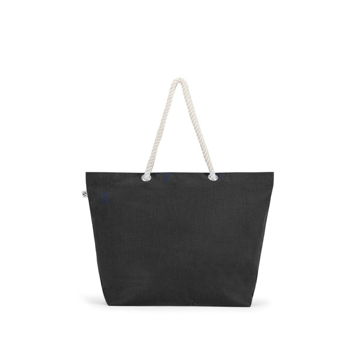 Saco de praia em algodão reciclado (70%) e poliéster reciclado (30%), com gramagem de 220 g/m², pensado para uso diário em ambientes de verão e em eventos. Inclui asas em corda de algodão torcida de 65 cm, confortáveis para levar ao ombro. O tecido apresenta cor lisa sem tingimento e pode mostrar pequenas variações de tom e impurezas próprias do fio reciclado, o que confere um acabamento natural. Opção prática para merchandising em praias, campanhas sazonais e packs de boas-vindas.