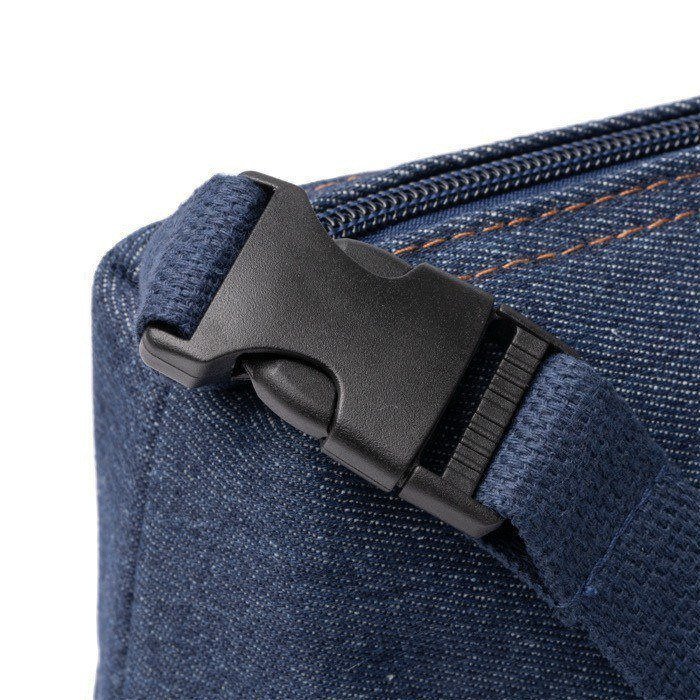 Geleira em tecido ganga reciclado com interior isotérmico, concebida para manter alimentos e bebidas a uma temperatura estável ao longo do dia. O compartimento principal fecha com fecho de correr a condizer e inclui puxador metálico, facilitando a abertura mesmo em movimento. A asa de transporte com fivela permite ajustá-la e transportá-la confortavelmente conforme a utilização. Pelo formato unissexo e pela apresentação cuidada, adequa-se a ações de boas-vindas, eventos internos ou campanhas de marca para equipas e clientes.