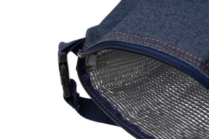 Geleira em tecido ganga com interior isotérmico e asa com fivela
