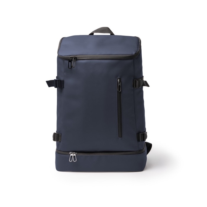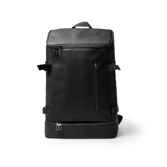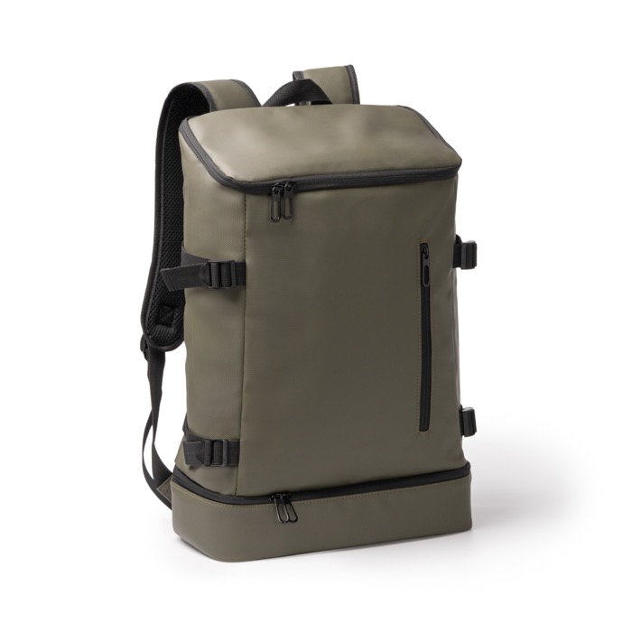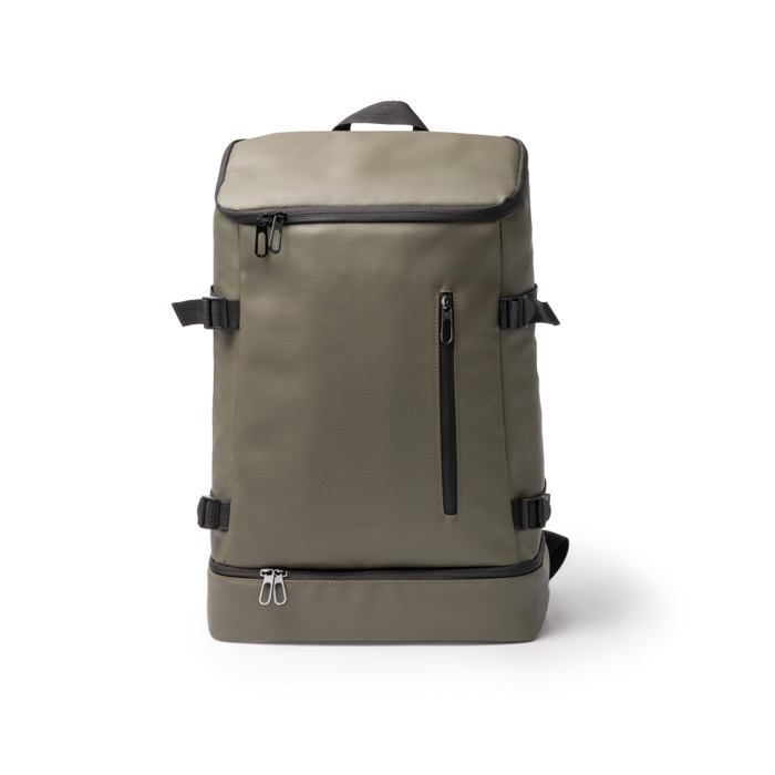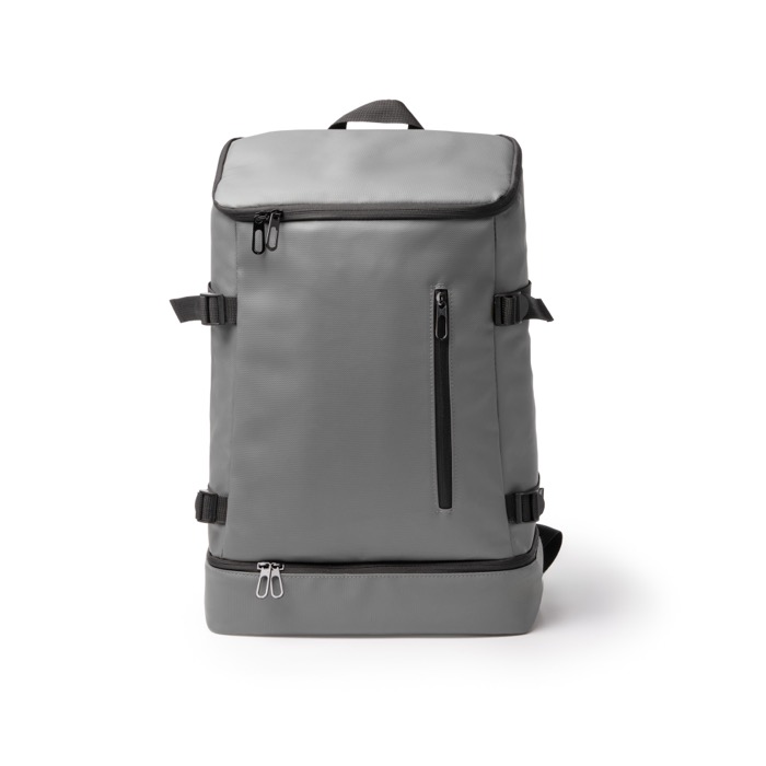 Mochila térmica em pele sintética com interior isotérmico, pensada para transportar alimentos e bebidas em duas zonas separadas. O compartimento principal abre pela parte superior para acesso rápido ao conteúdo, enquanto o inferior oferece abertura total para melhor organização. Ambos os fechos são de duplo cursor, facilitando o manuseamento em movimento. Inclui um painel frontal amplo e fivelas laterais para ajustar a carga. As costas e as alças acolchoadas melhoram o conforto durante as deslocações. Útil para ações de marca em eventos e para equipas comerciais.