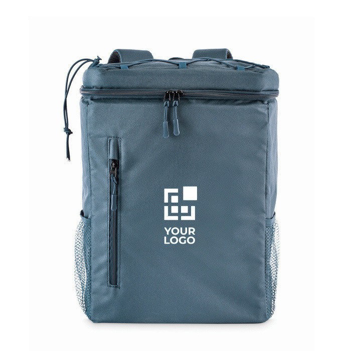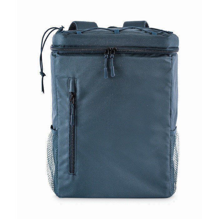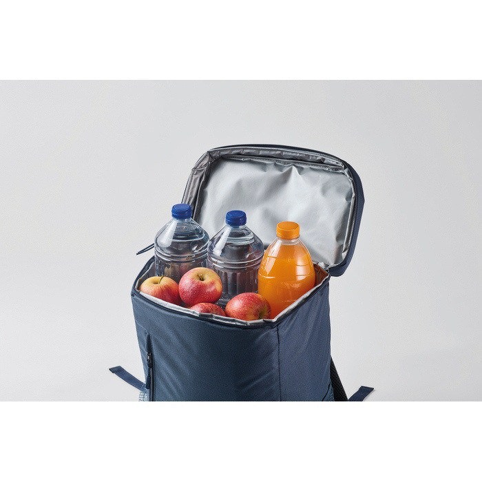Mochila térmica de poliéster rPET 600D com interior isolante para transportar comida e bebida ordenadamente. Contém forro isolante de PEVA e espuma de PE de 5 mm para manter a temperatura durante o trajeto. As alças ajustáveis acolchoadas possibilitam a utilização confortável em deslocações. Inclui bolso frontal e dois laterais de malha para acessórios. Recomendada para eventos corporativos, equipamento de campo ou packs de boas-vindas.