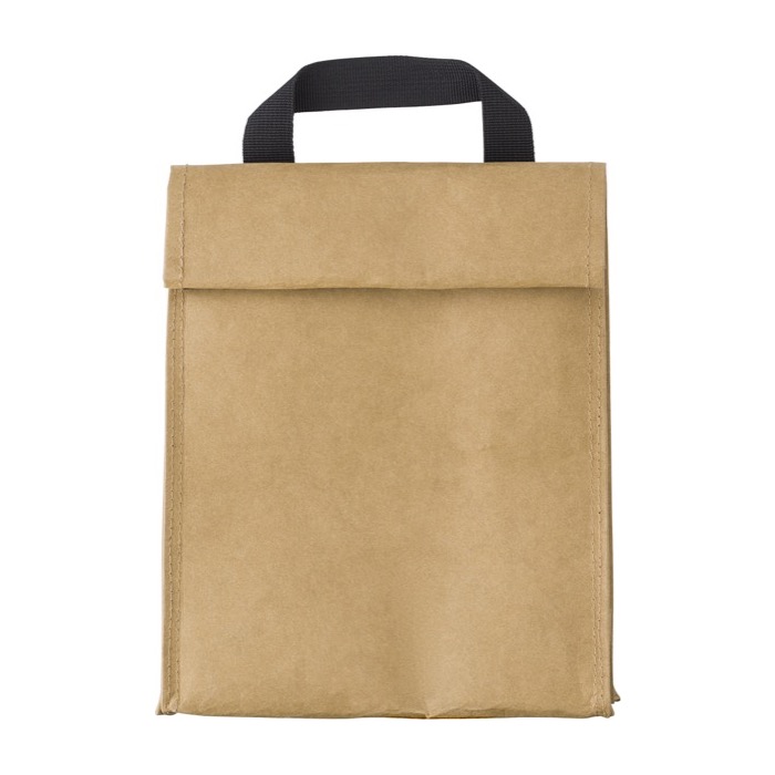 Se quer adicionar um estilo distinto aos seus brindes publicitários, opte por este saco térmico, o qual conta com um exterior feito de papel kraft lavável.