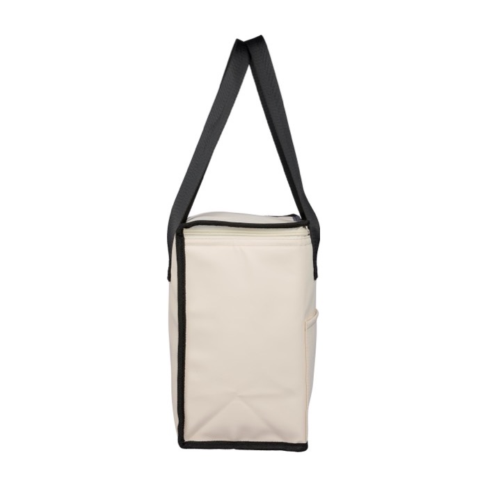Saco térmico de pele sintética reciclada com forro de poliéster reciclado 210D. Oferece capacidade de 9 L para transportar comida e bebida no dia a dia, no escritório ou em deslocações. Dispõe de asas compridas de 66 cm para levar ao ombro confortavelmente. Inclui bolso dianteiro para armazenar guardanapos, talheres ou documentação pequena. Entregue embalado por unidade e pronto para personalização em ações corporativas e eventos.