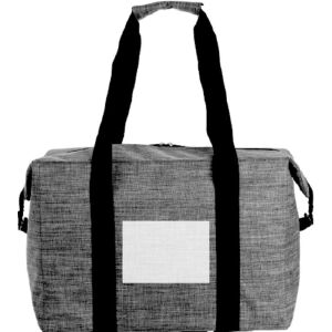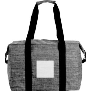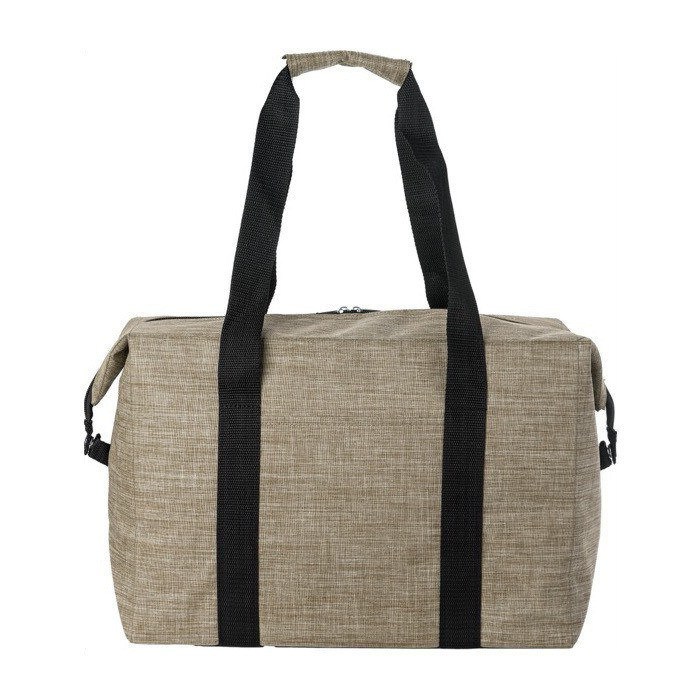 Saco isotérmico em poliéster 600D. Um compartimento grande e um bolso pequeno na parte da frente. Duas alças de transporte curtas com fecho de velcro. O interior é isolado com espuma de alumínio.