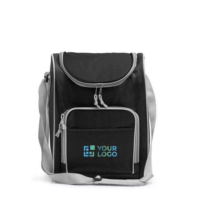 Mantenha alimentos e bebidas à temperatura ideal no verão com este saco térmico multiusos com bolso frontal e alça ajustável. Personalize-o com o seu logo.