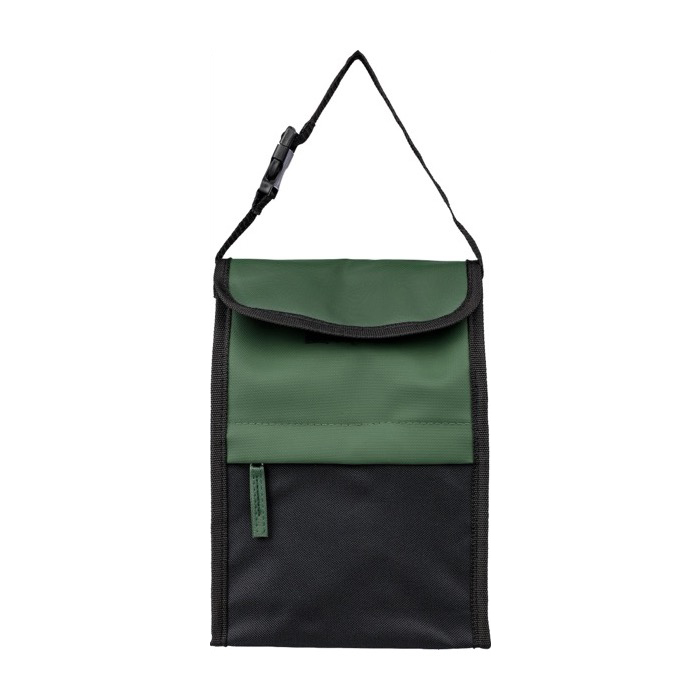 Saco térmico em poliéster rPET (600D) com revestimento em PU impermeável. Inclui enchimento PE de 2 mm e revestimento em folha de alumínio para isolamento. Inclui um bolso frontal com fecho de correr, um compartimento superior, um bolso lateral em rede e um fecho adesivo. Concebida com uma pega de transporte, fivela de plástico e alça de ombro. Capacidade de 5 l, três compartimentos. Inclui uma etiqueta rPET no exterior e uma etiqueta personalizada no interior.