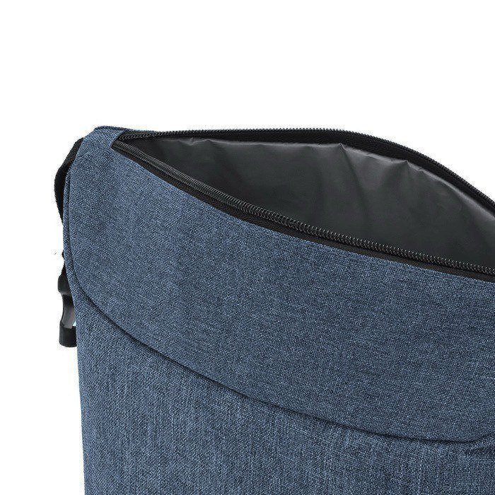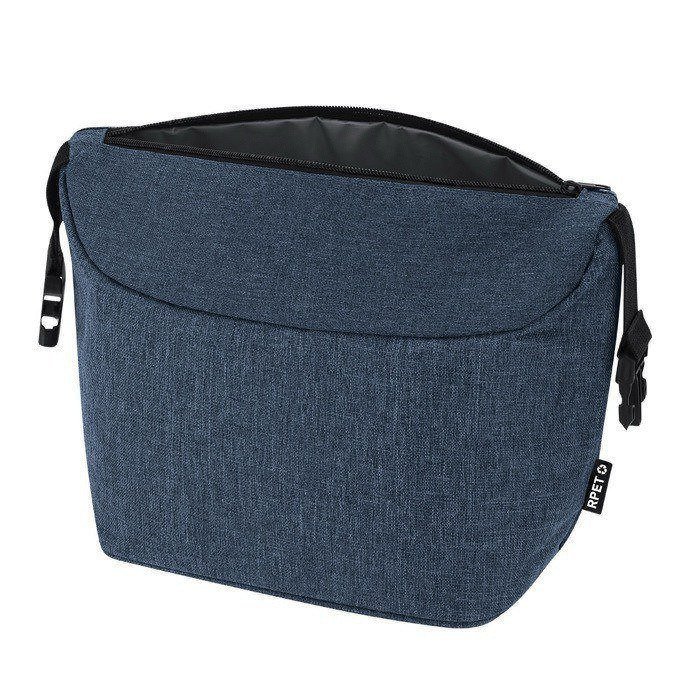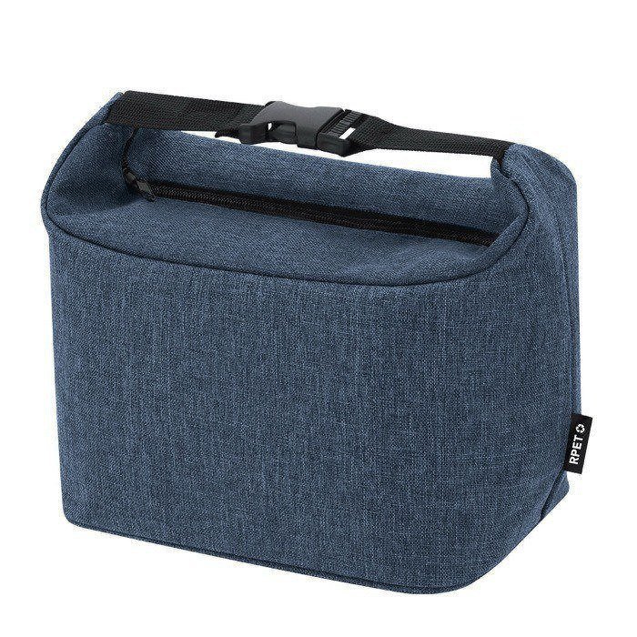 Saco térmico feito de plástico reciclado (rPET) 600D, desenhado para uso diário no escritório e deslocações. Aspecto original com fivela em ambas as pontas para o transportar mais confortavelmente e ajustar o fecho de acordo com a carga. Contém um compartimento principal térmico para manter bebidas e alimentos a temperatura constante durante mais tempo. Inclui etiqueta identificativa de plástico reciclado (rPET), útil para reforçar a mensagem do artigo em ações internas. Opção prática para eventos, formações ou como brinde empresarial com logo.