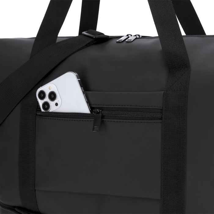 Saco extensível feito de PU macio, concebido para oferecer uma solução prática e versátil. Conta com bolso frontal para trolleys e maletas, proporcionando funcionalidade durante o transporte. Sistema de fecho via puxadores metálicos. Inclui pegas e alça de ombro ajustável.