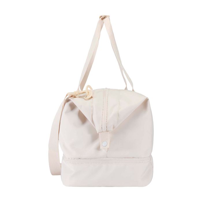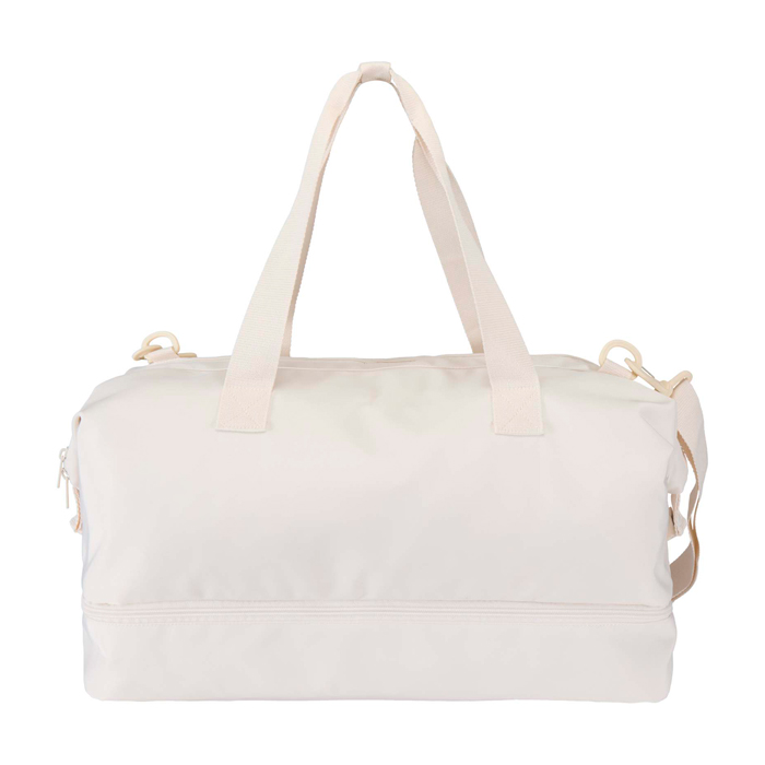 Saco de viagem de lona reciclada, versátil e espaçoso, perfeito para escapadelas curtas ou para levar tudo o que precisa com conforto. Feito de poliéster de sarja 290D resistente, com forro de malha macia e reforço interior com rPET 210D/poliuretano, combina durabilidade e praticidade. O compartimento principal inclui bolso amplo com fecho de correr para passaporte, canetas e chaves, além de dois bolsos interiores e dois porta-garrafas. Inclui um compartimento inferior independente com abertura em forma de amêijoa, ideal para separar calçado ou equipamento. Cada saco inclui um rastreador AWARE™, com código QR para verificar a sua origem e percurso na cadeia de fornecimento. Capacidade: 42 litros.