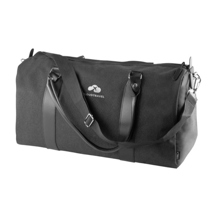 Saco de viagem de grande tamanho feito de poliéster RPET com pegas e uma alça comprida ajustável para homem. Dê visibilidade à sua marca pelo mundo fora!