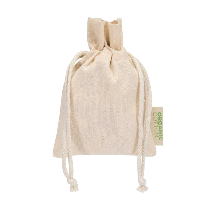 Saco-oferta de algodão 100% de 140 g/m2 com fecho de cordão também de algodão, pensado para entregar ou guardar pequenos artigos ordenadamente. O formato 15 x 10 cm condiz com brindes empresariais, amostras ou acessórios e facilita a entrega no balcão ou em eventos. A certificação OCS (Organic Content Standard) identifica o conteúdo orgânico do tecido quando necessário em compras internas. Opção prática para ações de marca, boas-vindas a colaboradores ou promoções em ponto de venda.