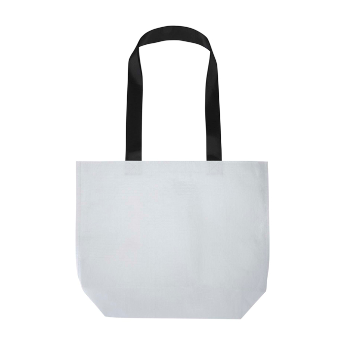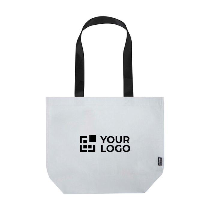 Saco tote de plástico reciclado (rPET) de 150 g/m2 com certificação GRS (Global Recycled Standard) e laminado duplo para melhorar a durabilidade e conferir resistência contra a água quando for necessária. Dispõe de compartimento principal aberto e amplo, asas reforçadas para uso contínuo e fundo largo para aproveitar melhor a carga. Aguenta até 10 kg e proporciona uma capacidade de 18 L, pensada para o ritmo diário. Adequado para feiras comerciais, eventos e ações de visibilidade de marca.