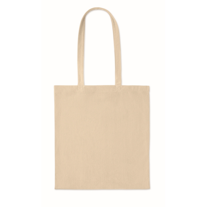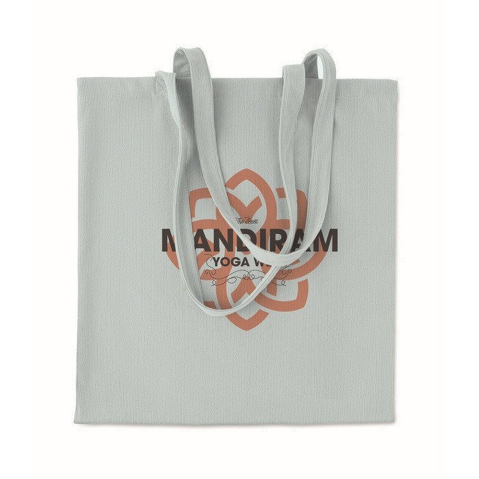Saco de compras de bombazine de poliéster de 220 g/m2, projetado para uso diário em lojas, eventos e escritórios. Dispõe de asas compridas para o levar ao ombro confortavelmente e facilita o transporte de documentos, catálogos ou compras. O tecido confere-lhe uma textura distinta e boa aparência para ações de visibilidade. Formato prático para entregas em feiras, packs de boas-vindas ou como apoio na distribuição de merchandising em pontos de venda e campanhas corporativas.