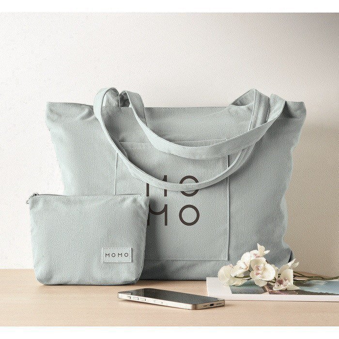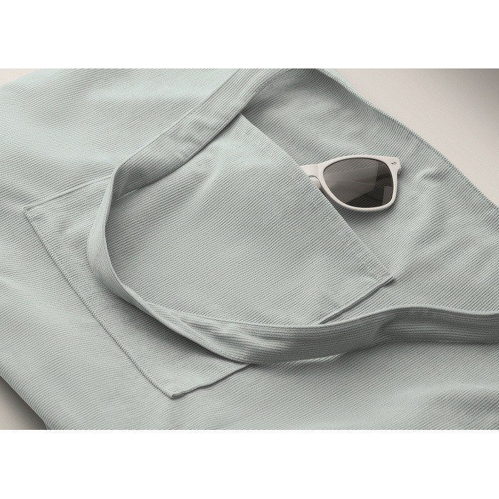 Saco de compras ou praia de bombazine de poliéster de 220 g/m2, projetado para uso diário com bom espaço de carga. Inclui fecho superior com cremalheira para manter o conteúdo protegido durante o transporte. Dispõe de bolso dianteiro aberto para ter à mão o que usa mais frequentemente e bolso interior para organizar chaves, telemóvel ou documentação. Opção prática para packs de boas-vindas, eventos internos ou ações de merchandising em lojas.