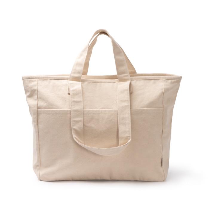 Saco de algodão reciclado de 420 g/m² com estrutura pensada para o uso diário em ambientes empresariais. Incorpora alças duplas reforçadas em dois comprimentos para o transportar ao ombro ou na mão. O fole na base e nas laterais oferece maior capacidade e uma forma mais flexível quando vai cheio. Inclui dois bolsos frontais para organizar acessórios e fecho de correr no compartimento principal, útil para deslocações. Opção prática para eventos, ações de marca ou utilização interna no escritório.