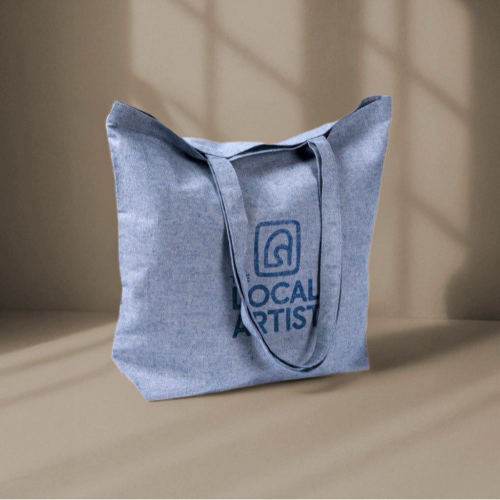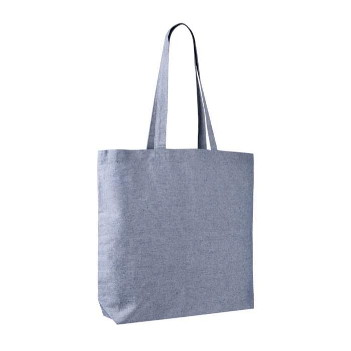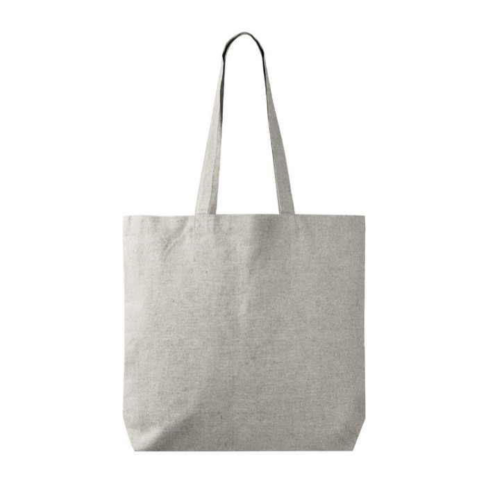 Saco tote feito de algodão e poliéster reciclados de 220 g/m². Também inclui certificação REACH.