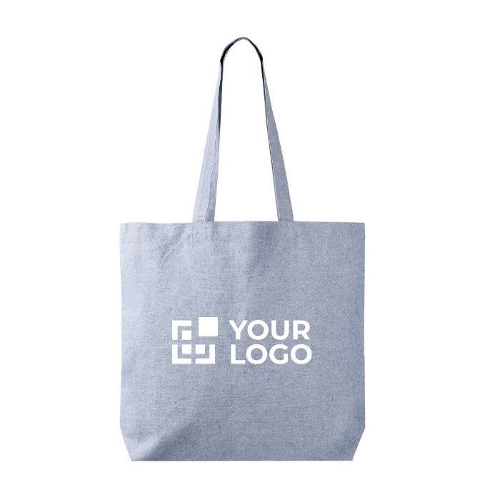 Saco versátil de algodão e poliéster reciclados 220 g/m² com certificação REACH, que passará uma mensagem positiva da sua empresa quando o oferecer numa feira.