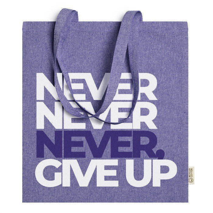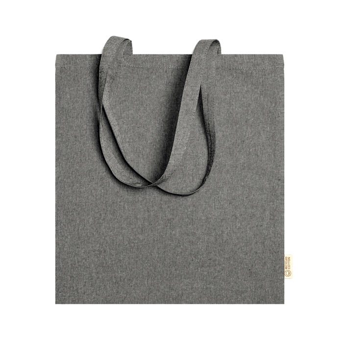 Saco 100% de algodão reciclado 120 g/m². Acabamento marmoreado com asas compridas de 70 cm.