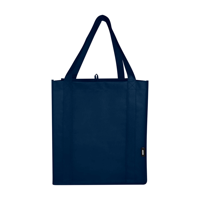 Feito de rPET não tecido, durável e resistente a rasgos, o saco reciclado e com certificação GRS tem uma placa de fundo de suporte, tornando-o versátil e sólido. Este saco tem um grande compartimento principal e asas com 25 cm de comprimento. Capacidade volumétrica: 29 L. Resistência até 12 kg.