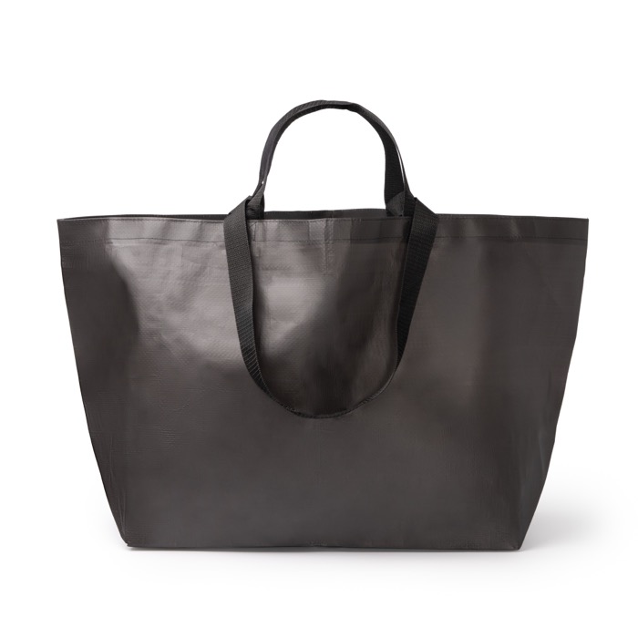 Saco reutilizável com fole e asas reforçadas em plástico tecido