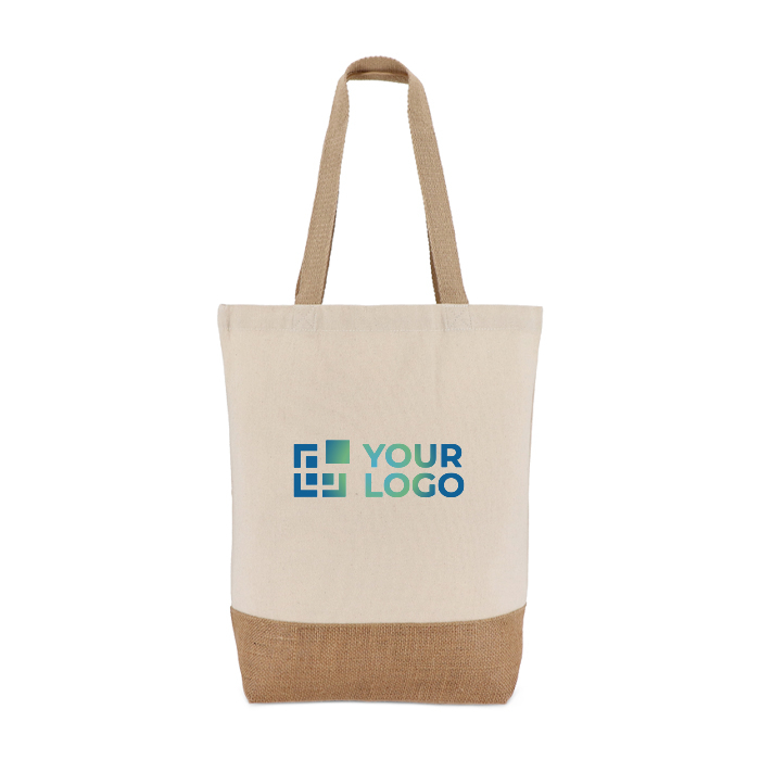Saco de lona de algodão e base de juta que oferece durabilidade, estilo e um toque ecológico. Atraia clientes com um design que combina praticidade e elegância.