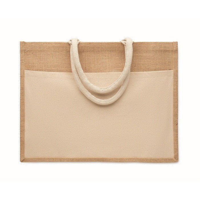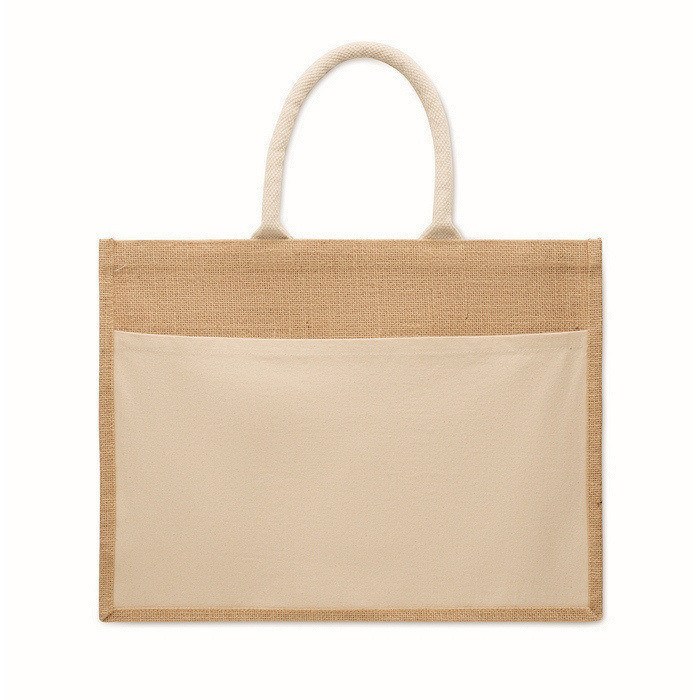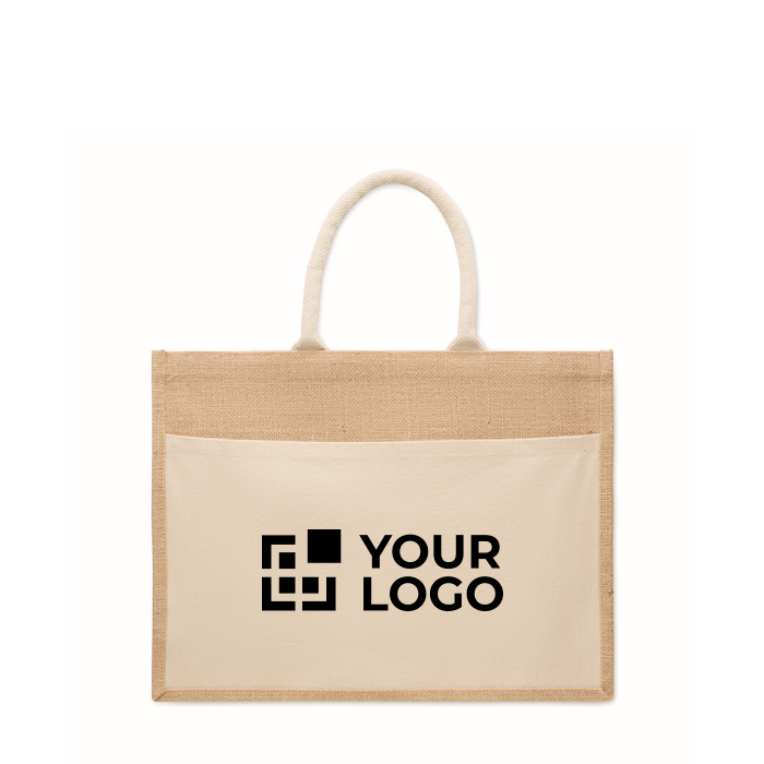 Saco de juta personalizado com bolso frontal e expansor Jute Trendy