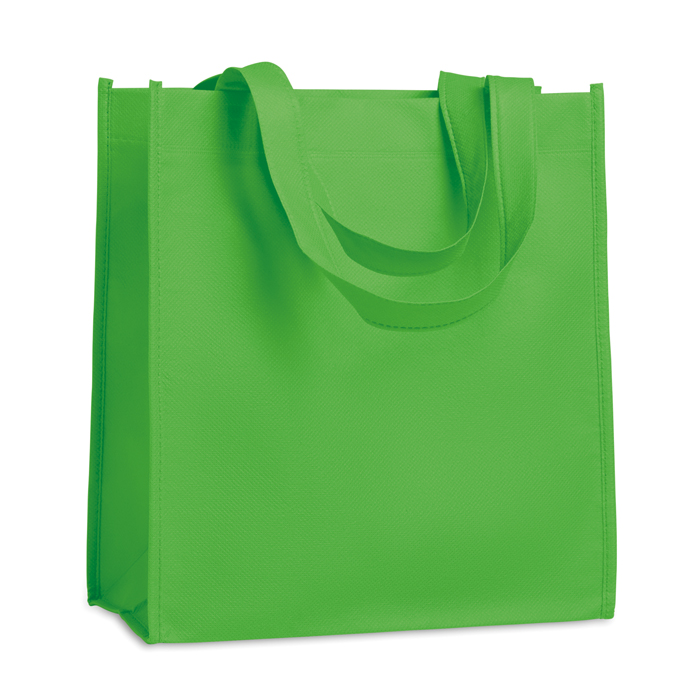 Um saco de compras confeccionado em tecido non-woven termosselado de 80 gr/m² que combina leveza e resistência num design compacto. As suas alças curtas facilitam o transporte e o seu fole aumenta a usabilidade, tornando-o num acessório prático e muito útil tanto para as compras como para qualquer situação do dia a dia. Ideal para eventos corporativos ou como brinde promocional, pode ser personalizado com o seu logótipo em duas faces, até mesmo conseguindo um design a cores se optar pela impressão através de transfer digital. Por outras palavras, o equilíbrio perfeito entre economia, praticidade e branding. Oferece serviço express para entregas urgentes.
